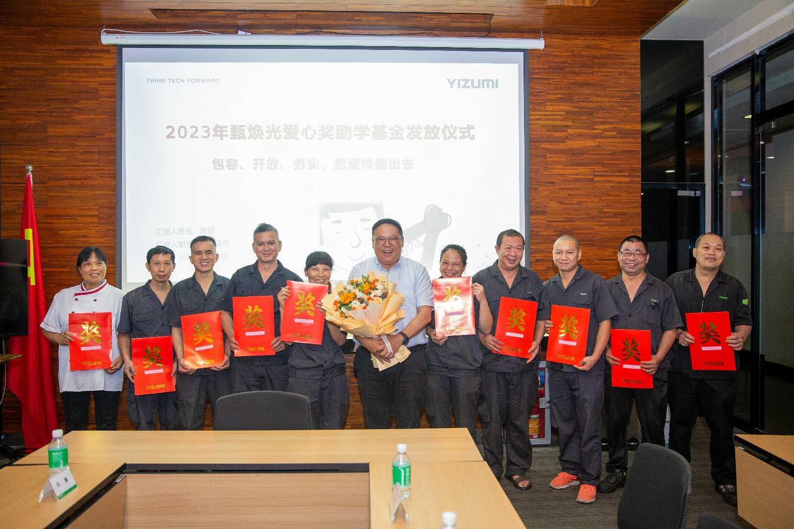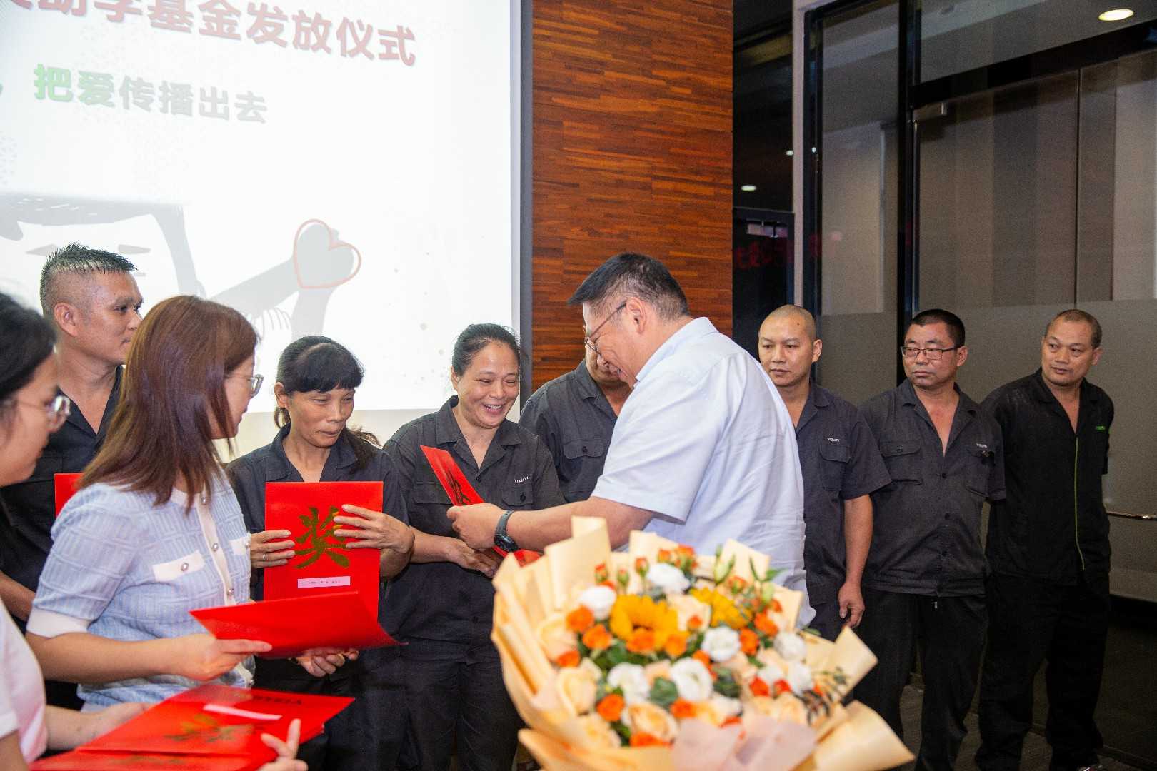 8月24日下午,本年度的伊之密“甄焕光爱心奖助学基金”发放仪式正式举行。“甄焕光爱心奖助学基金”创办人、伊之密董事长兼总经理甄荣辉先生出席,并亲自为伊哥颁发助学金及奖学金。18名伊哥子女获得“甄焕光爱心助学金”资助,4名伊哥子女获得“甄焕光爱心奖学金”奖励。
