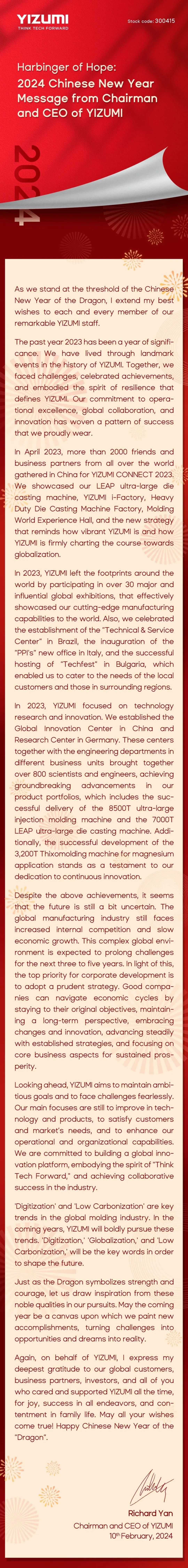 2024 Chinese New Year Message from Chairman and CEO of YIZUMI