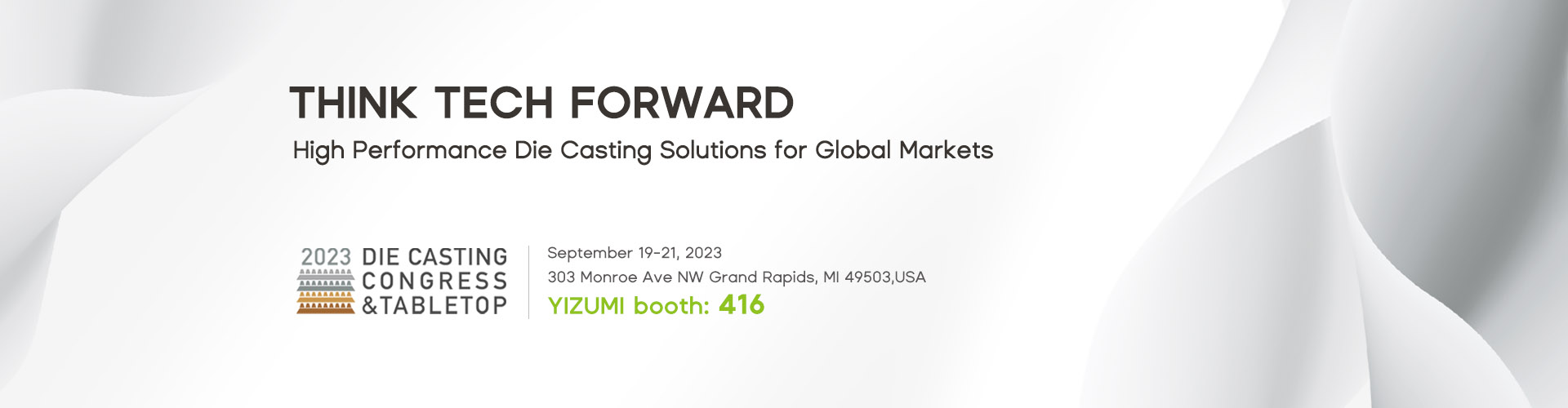 Join YIZUMl at NADCA Die Casting Congress & Tabletop. It will be held from September 19 to 21 in Grand Rapids, Michigan. As an exhibitor, YIZUMI will showcase advanced die-casting technology and products of the LEAP series and HII series die-casting machines. YIZUMI is looking forward to seeing you on site.