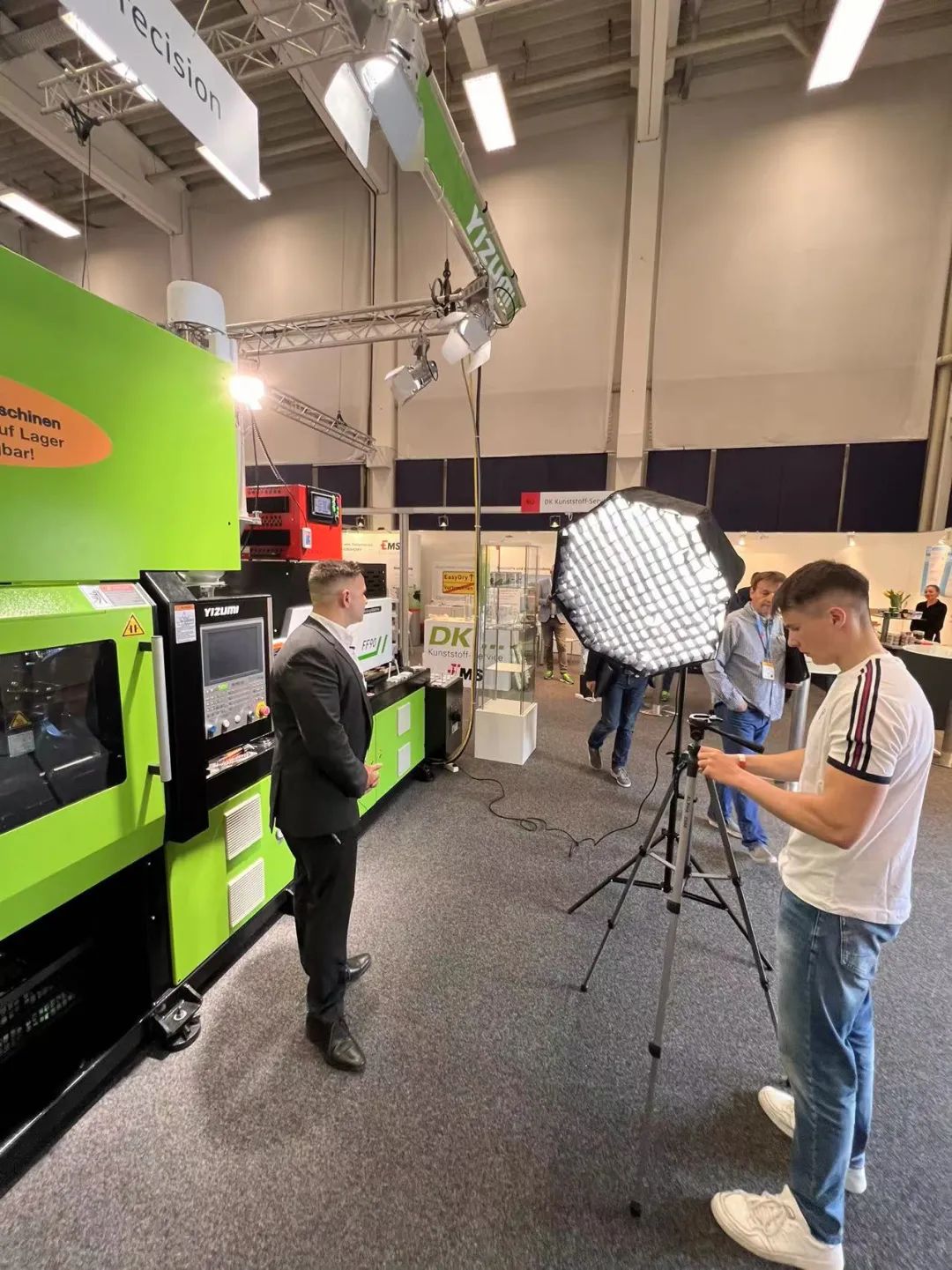 At the YIZUMI stand, there are not only various plastic products being displayed, but also the FF 90 injection molding machine, running on-site to produce pallets. The smooth and high-efficiency production has attracted many visitors for in-depth communication with our staff.