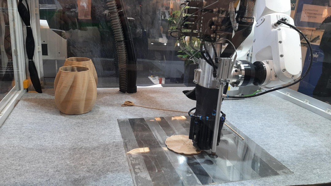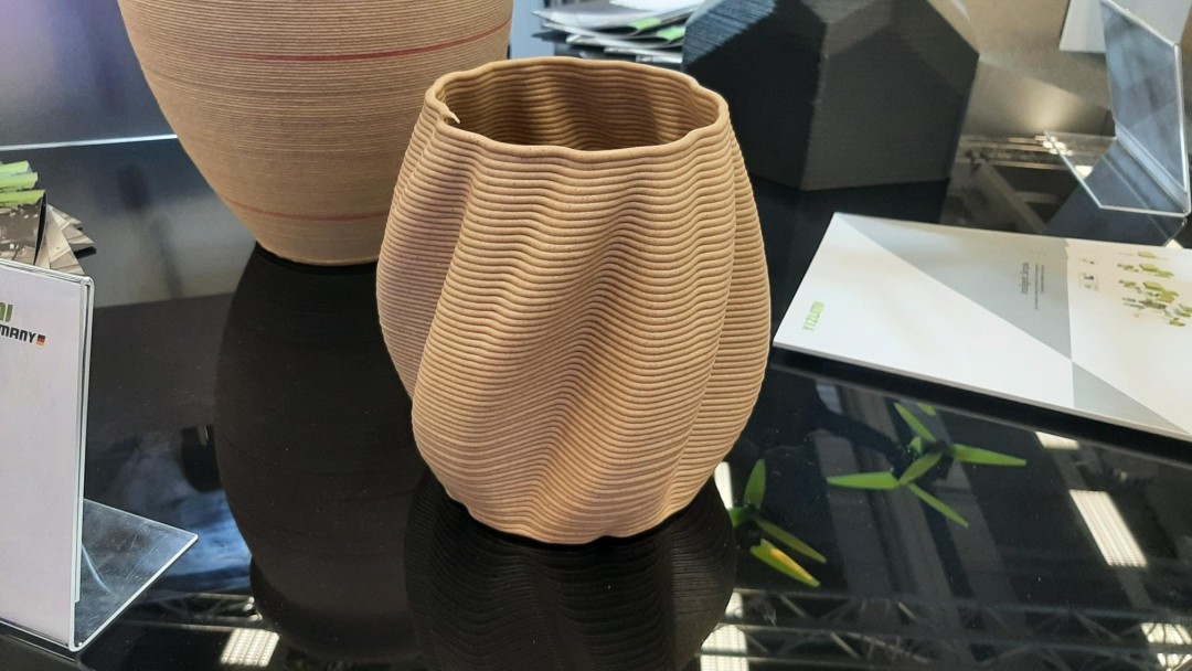 YIZUMI Germany is printing Biofibre vases on site at KUTENO 2022 from 10th to 12th May! With an impressive YIZUMI SpaceA industrial 3D printer-900E-500-S, each vase takes only 27 minutes of cycle time.