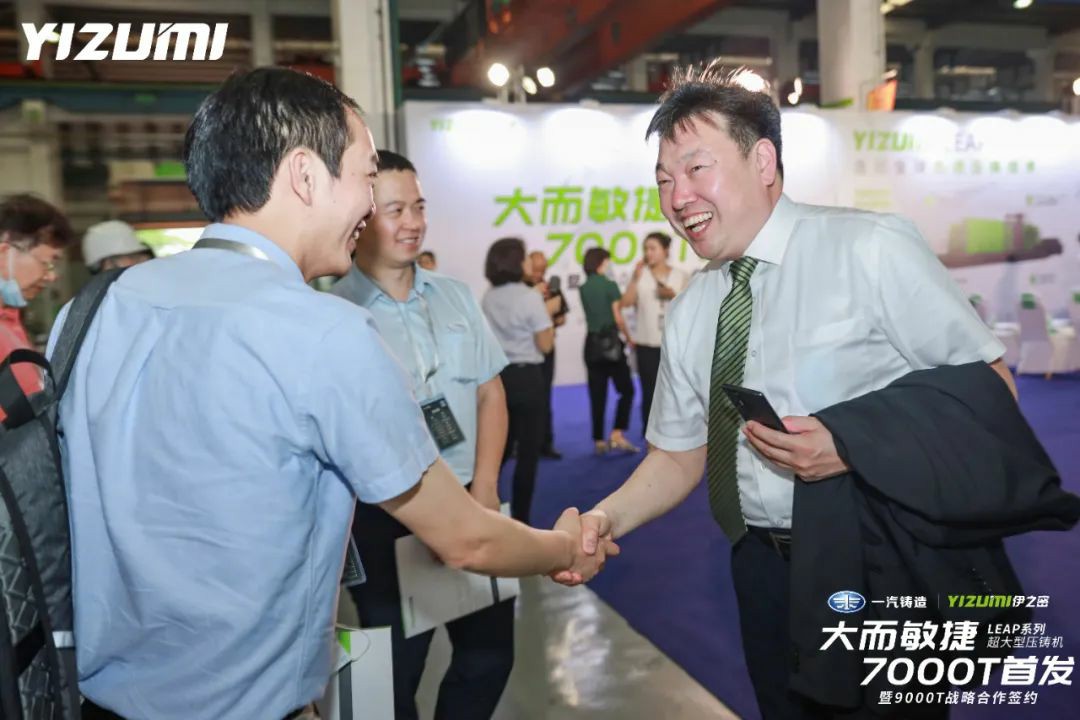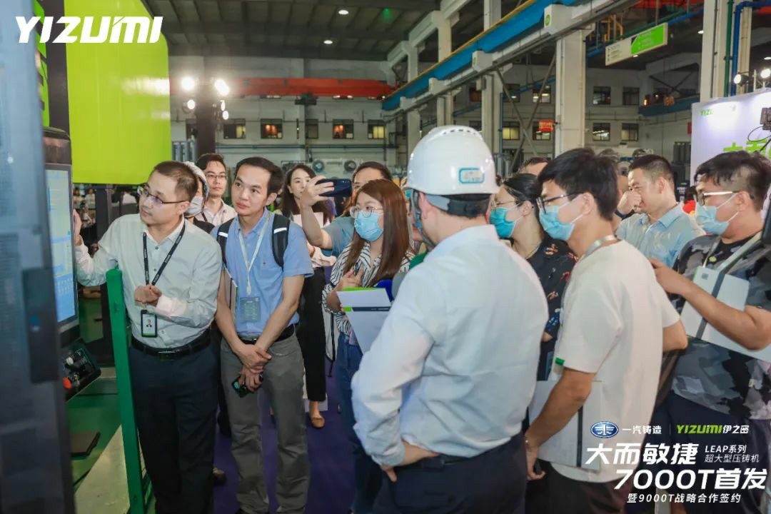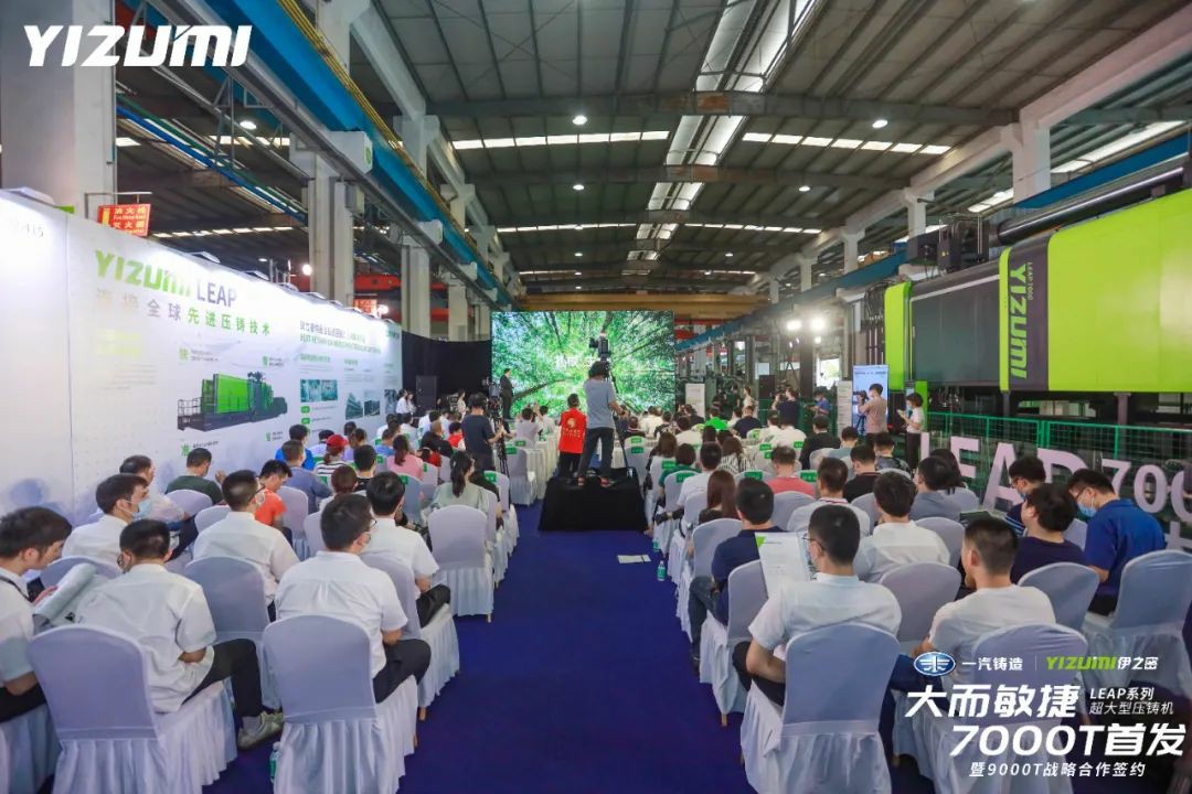 "Big and agile". On May 26th, the launching ceremony of the LEAP series 7000T Ultra-large die casting machine & signing ceremony of the LEAP series 9000T strategic cooperation was held in Shunde, Foshan. This is the first time for YIZUMI to publicise the 7000T LEAP series ultra-large die casting machine with global attention. The signing ceremony means that YIZUMI and FAW Foundry have established a strategic partnership for the integrated solution of 9000T die casting application.