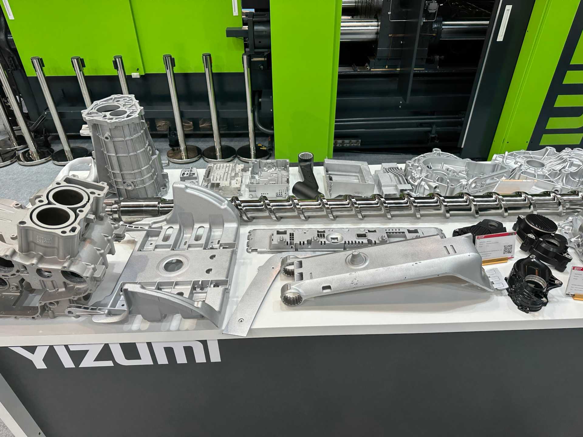 On the YIZUMI booth, various styles of die cast products are displayed. Among them, the "super large product" jointly completed by YIZUMI and a domestic Chinese vehicle manufacturing enterprise has received widespread attention. The external dimensions of this product are 1875x1617x736 mm, which currently is one of the largest known integrated structural die-casting component. The shot weight exceeds 100 kilograms, and the average wall thickness is only 3 millimeters, making it a huge challenge for the die-casting process. Thanks to the high dynamic injection performance of the LEAP series die-casting machine, the molding process with a maximum filling distance of over two meters could be managed well. The LEAP9000T ultra large die-casting machine with a locking force of over 100,000kN is ideally suited to cast such large components. In the future, as lightweighting and electrification continue to drive the development of automotive design, growth for integrated structural components will continue. Having successfully implemented various ultra-large die casting machine solutions, YIZUMI is proud to offer its highly productive ultra-large manufacturing cells to the wider market.