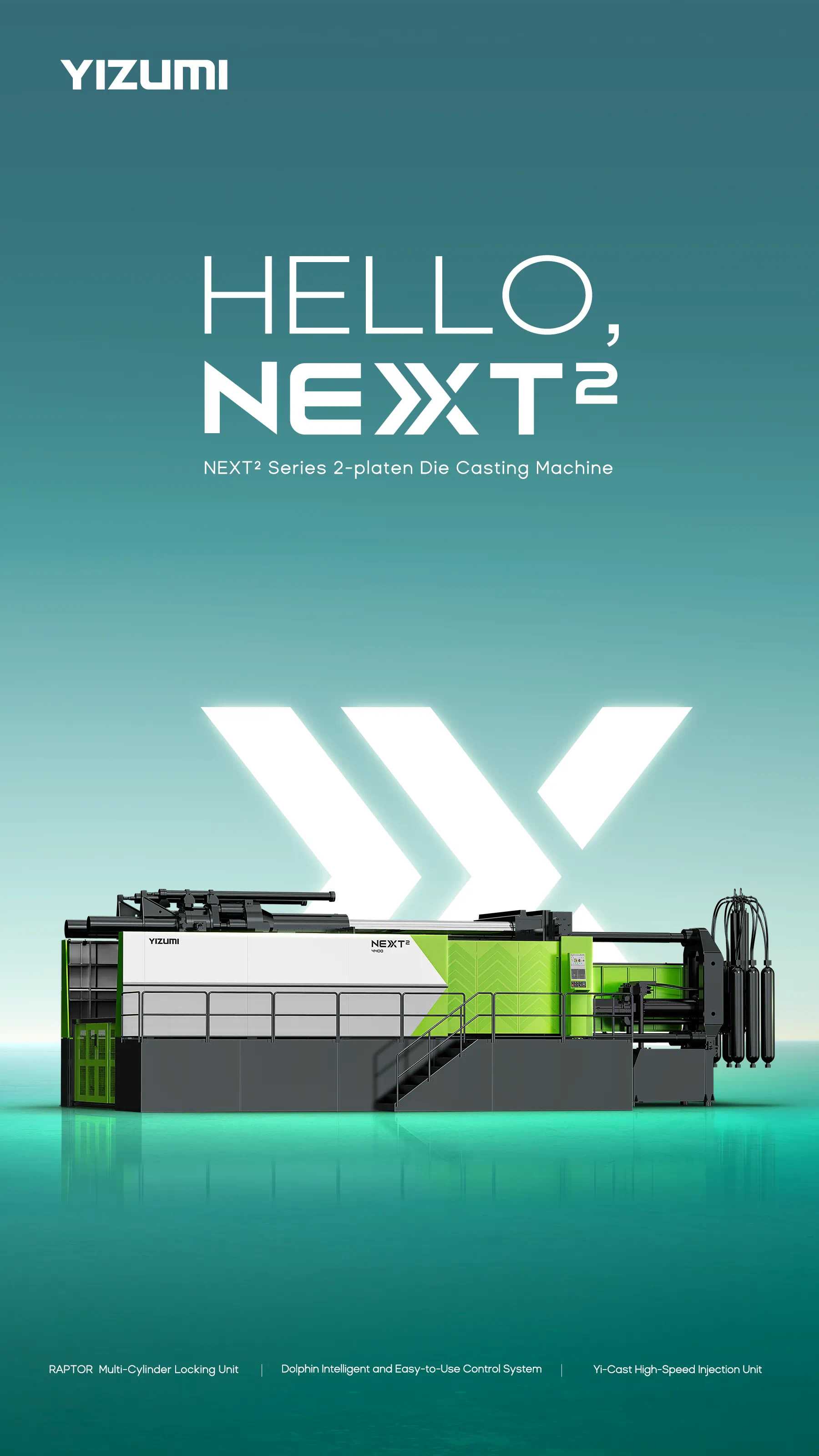 He notes YIZUMI's unwavering commitment to developing the world's best 2-platen die casting machine. As a testament to this ambition, the NEXT² series machine sets new standards in design philosophy, technological innovation, performance, and value creation, propelling the entire industry into a new era of 2-platen machinery.