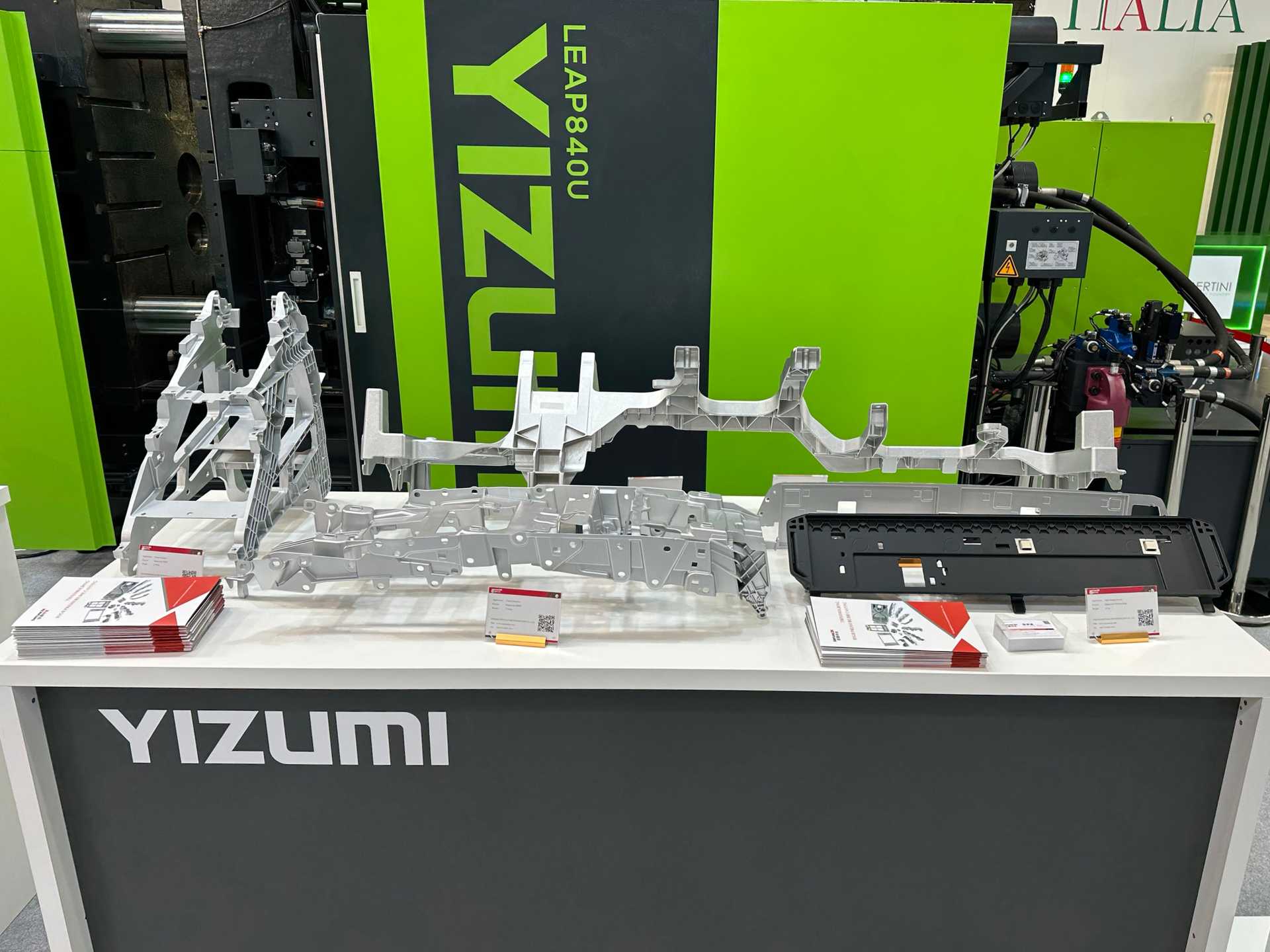 YIZUMI presents a variety of interesting and demanding die casting sample parts. Among them, an "ultra-large die-casting structural part" jointly developed by YIZUMI and a domestic vehicle manufacturer which already received widespread attention. With dimensions of 1875x1617x736 mm, the product is among the largest known integrated die-cast structural parts. It was cast on a LEAP9000T ultra-large die-casting machine with a maximum clamping force of up to 100000kN. This production example validates that YIZUMI LEAP series die-casting machines can meet the most demanding needs of large integrated die-casting structural parts for global new energy vehicles.