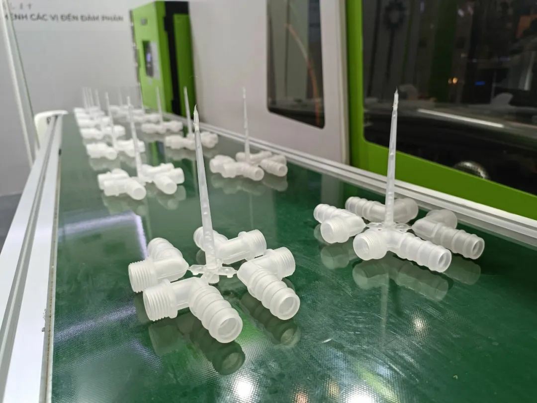 At the YIZUMI stand (Booth A743), there are not only various plastic products being displayed, but also the FF 160 injection molding machine, running on-site to produce 90° elbow hose connectors. The smooth and high-efficiency production has attracted many visitors for in-depth communication with our staff.