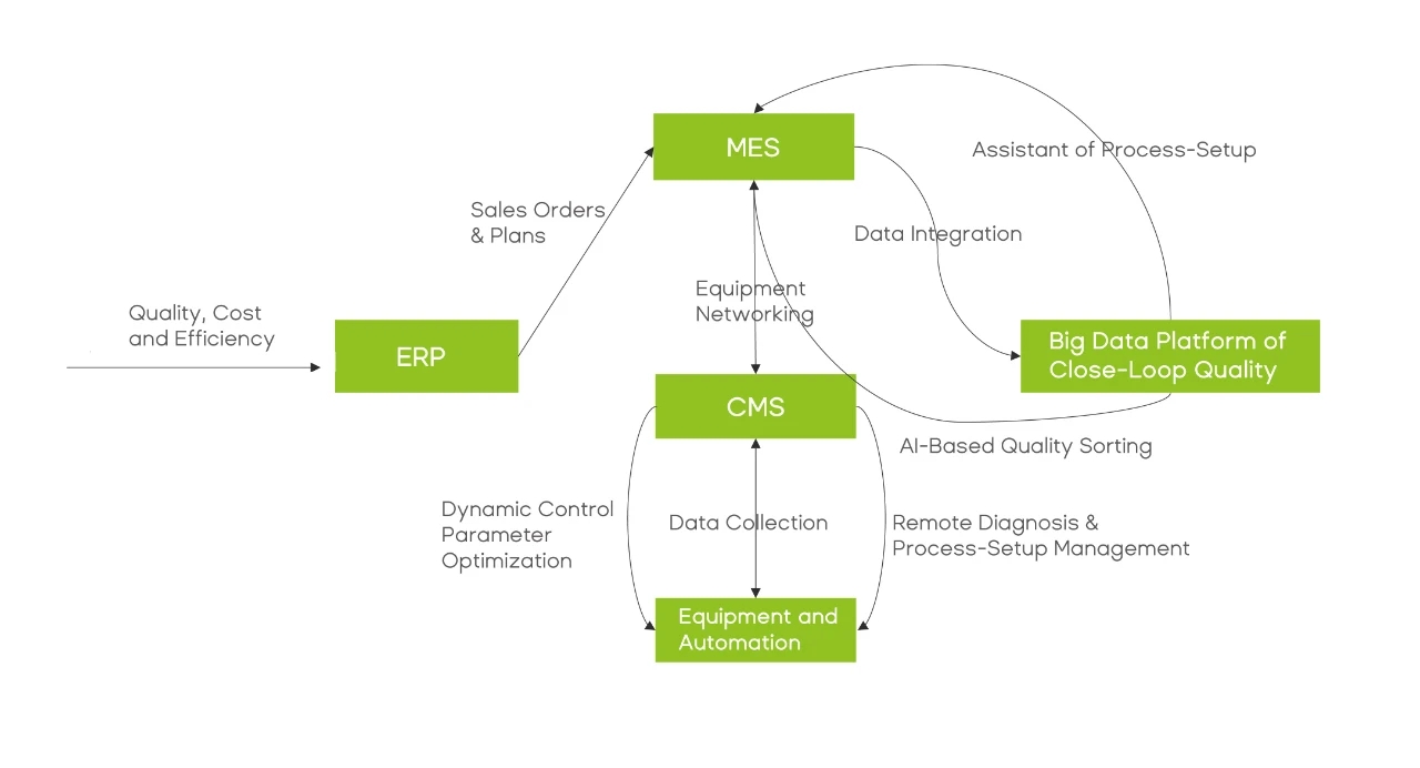 Yi CMS is a key bridge connecting the production lines with automated equipment alongside other physical entities to MES system. It undertakes the collection of vital production data, comprehensive monitoring of operational workflows, and strict control over production quality.