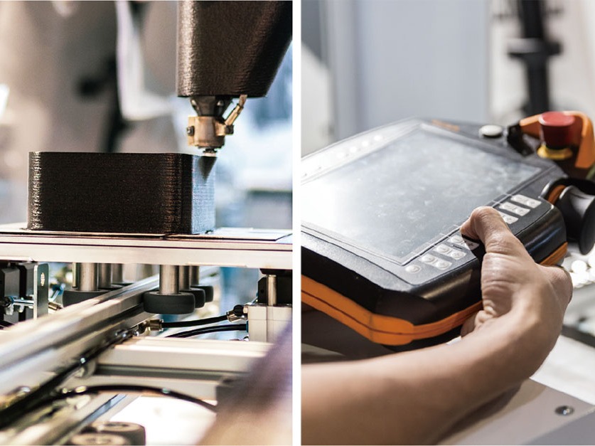 SpaceA technology is based on the layer-by-layer deposition of molten thermoplastic. A solid component can be built by solidifying this melt strand. YIZUMI´s SpaceA technology is based on 4 principles for economical use: