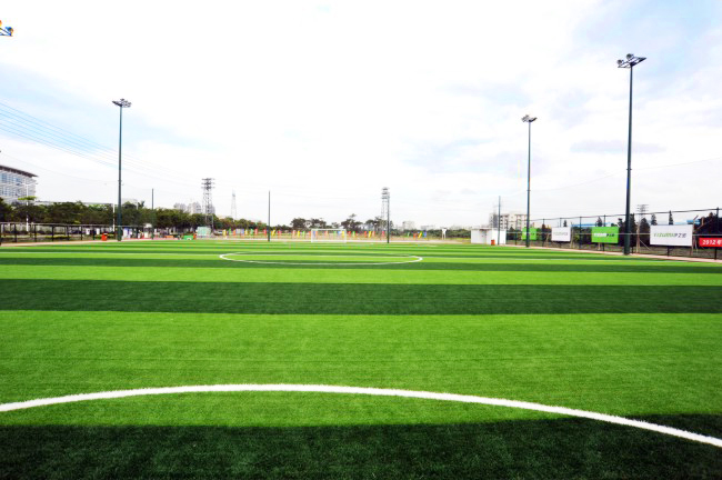 7人标准足球场:45米×70米,绿色环保的人造草材质,密度均匀,酷似天然草坪;缓冲作用良好,有效防止侧滑,保证球的弹性和滚动正常。配置专业灯光,灯光亮度可支持电视台现场直播。