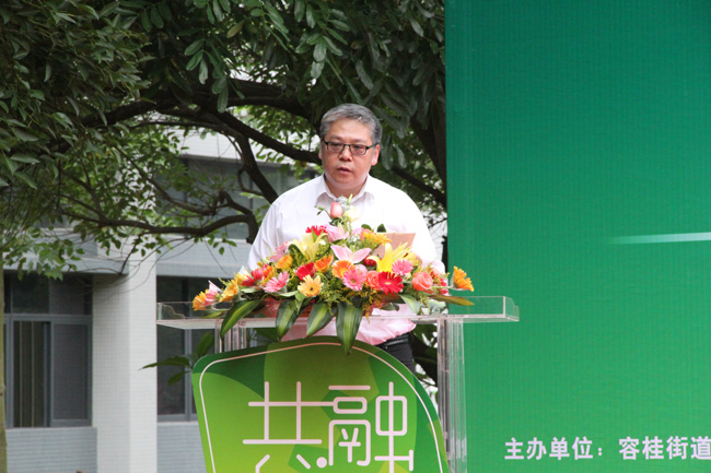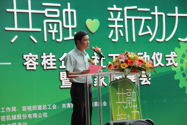 图1:容桂党工委委员、社工局局长陈汝强在会上致辞