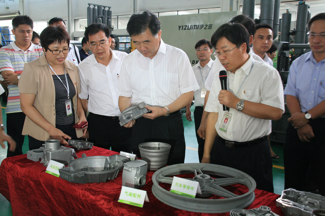 参观车间过程中,汪洋书记边走边听介绍,关切询问起伊之密的产品研发情况。张涛介绍:公司通过自主研发和产学研相结合增强自主创新能力,逐步向产业链高端延伸,企业效益和综合竞争力不断提升,有效保证了伊之密机器行业领先的地位。目前,公司已经拥有高效节能PET瓶坯注射成型设备、基于伺服驱动技术的新型节能注塑机、高性能重型实时控制铝镁合金压铸机、镁合金半固态注射成型成套设备、高性能复合绝缘子专用注射成型机等多个拥有核心技术的产品系列。