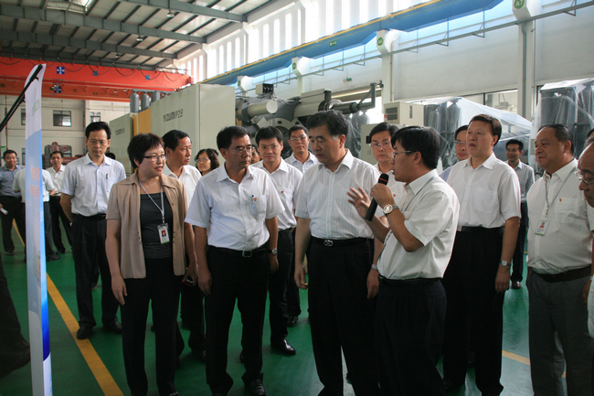 广东省委书记汪洋同志一行受到了伊之密公司董事梁敬华、公司董事会秘书、注塑机事业部副总经理张涛、压铸机事业部总经理李业军等公司高层的热烈欢迎和热情接待,并在伊之密高层的陪同下,兴致勃勃地参观了注塑机、压铸机和橡胶机三个事业部的生产装配车间。张涛向汪洋书记详细地介绍了公司的发展历程和经营模式,汪洋书记对于伊之密近几年的高速发展和以创新促进发展的模式给予了充分的肯定,高度赞赏了顺德企业家敢于突破思想观念束缚,实行体制创新的大胆先行举措。
