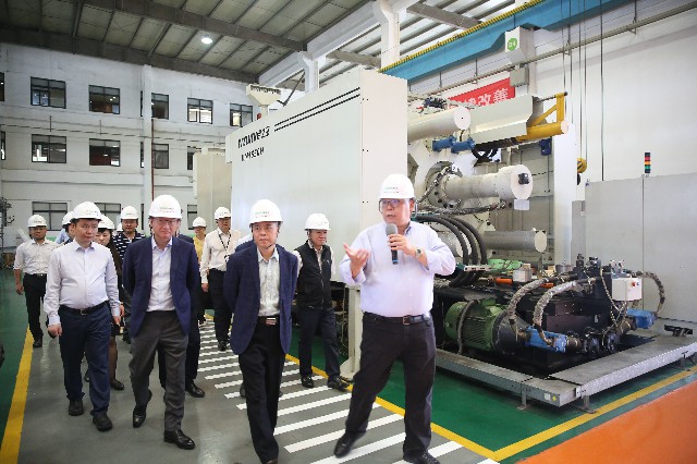 参观期间,何映昆副司长一行还重点围绕广东省广深佛莞智能装备产业集群建设情况,与伊之密开展深入交流。伊之密在广东省广深佛莞智能装备产业集群产业链中,担负着整机与成套装备提供者的角色,一直与集群发展促进机构——广东省机械工业质量管理协会合作紧密、互相促进。作为该集群实体项目之一的伊之密全球创新中心,自2019年10月动工、去年5月封顶以来,正在有条不紊地推挤建设,项目预计今年国庆节前后,能投入使用,将成为伊之密全球创新孵化基地、为全球创新人才提供优质的平台资源和创客氛围。