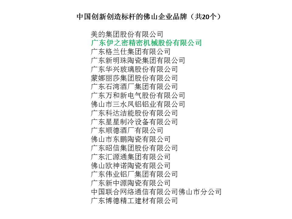 9月9日,伊之密在第七届“品牌佛山”活动中,荣获“中国创新创造标杆的佛山企业品牌”称号,一同获得该称号的还有美的、万和电气、蒙娜丽莎、格兰仕等企业。