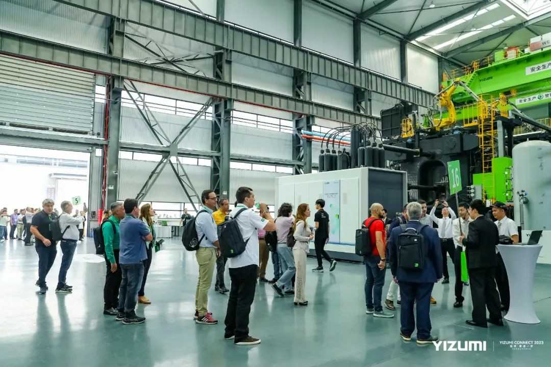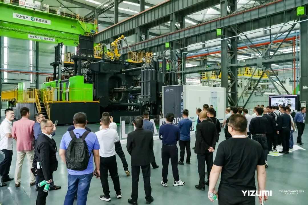 活动中,嘉宾参观伊之密五沙第三工厂,该工厂包括数字化工厂、超重型压铸机厂房两大部分。伊之密数字化工厂是基于精益制造、工业4.0智能制造的理念建设的,规划了FMS柔性制造系统,智能中心仓储系统,机器人自动喷涂系统,自动化厂内物流系统以及高度定制化的WMS和MES系统。工厂设计生产节拍15分钟/台,单班设计产能达1000台/月,相较于传统生产方式,生产周期缩短33% ,整体产量提升80%。