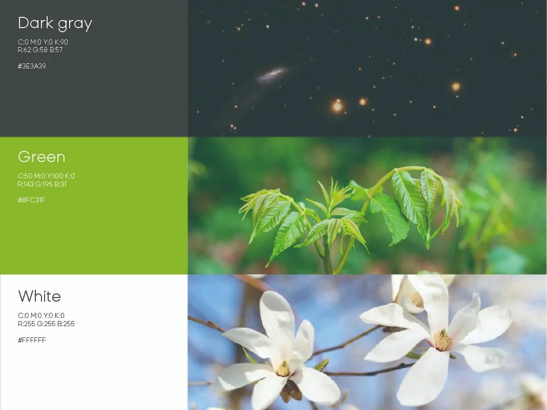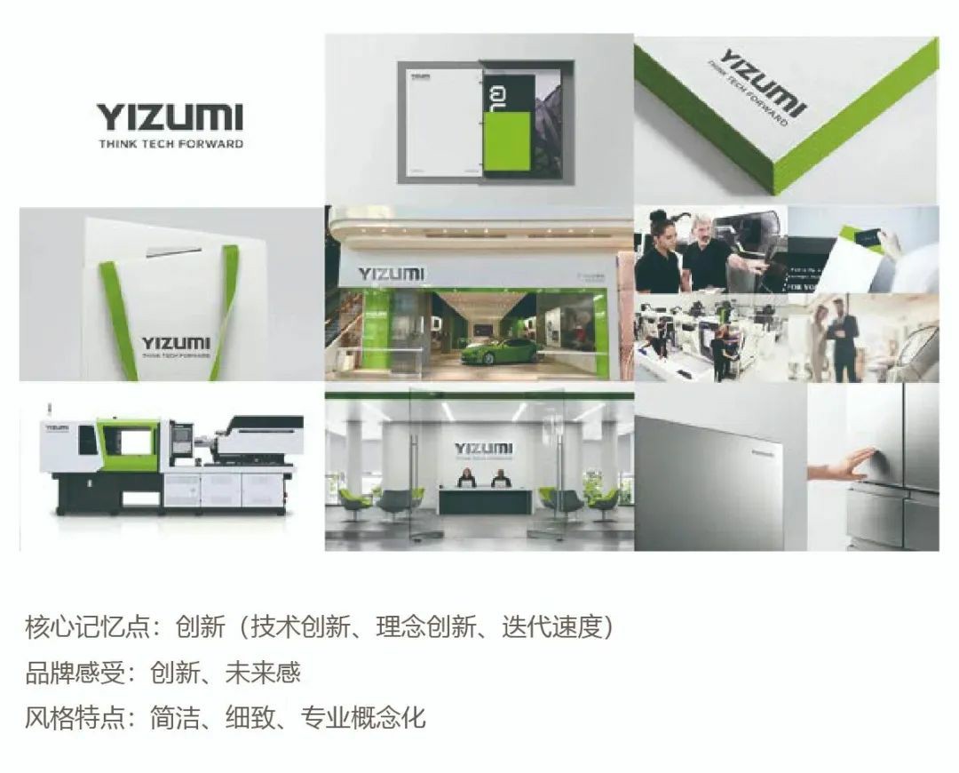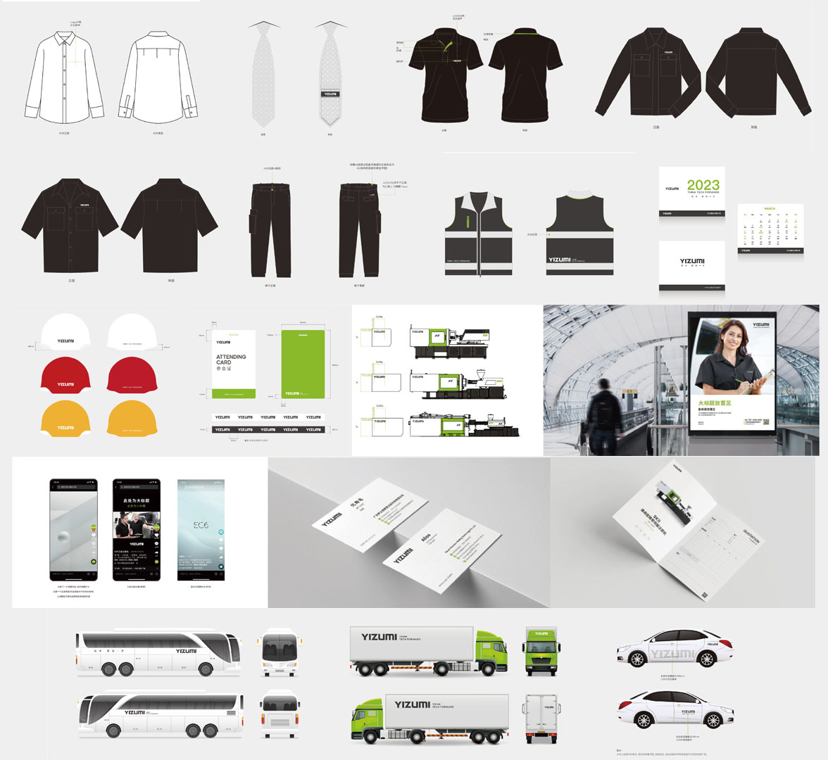 2022年,完成品牌升级后,YIZUMI向全球发布全新企业VI(企业视觉识别系统),新VI由“深邃灰、生命绿、君子白”标准色组成。其中“深邃灰”是标准色,“生命绿”和“君子白”是辅助色。
