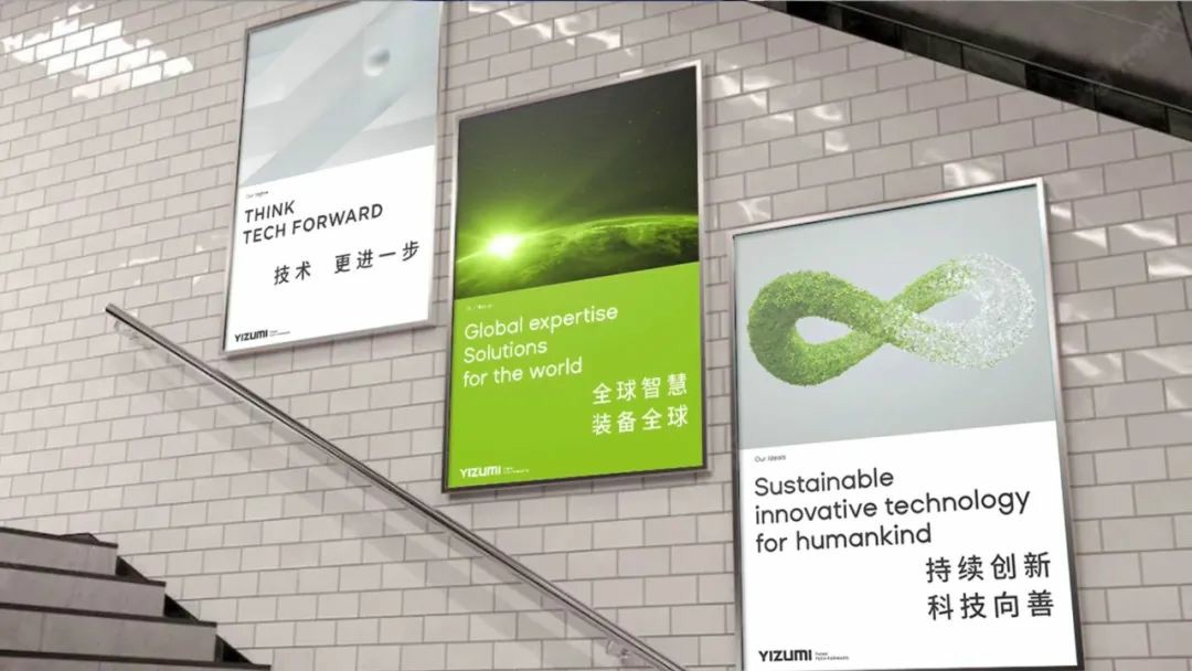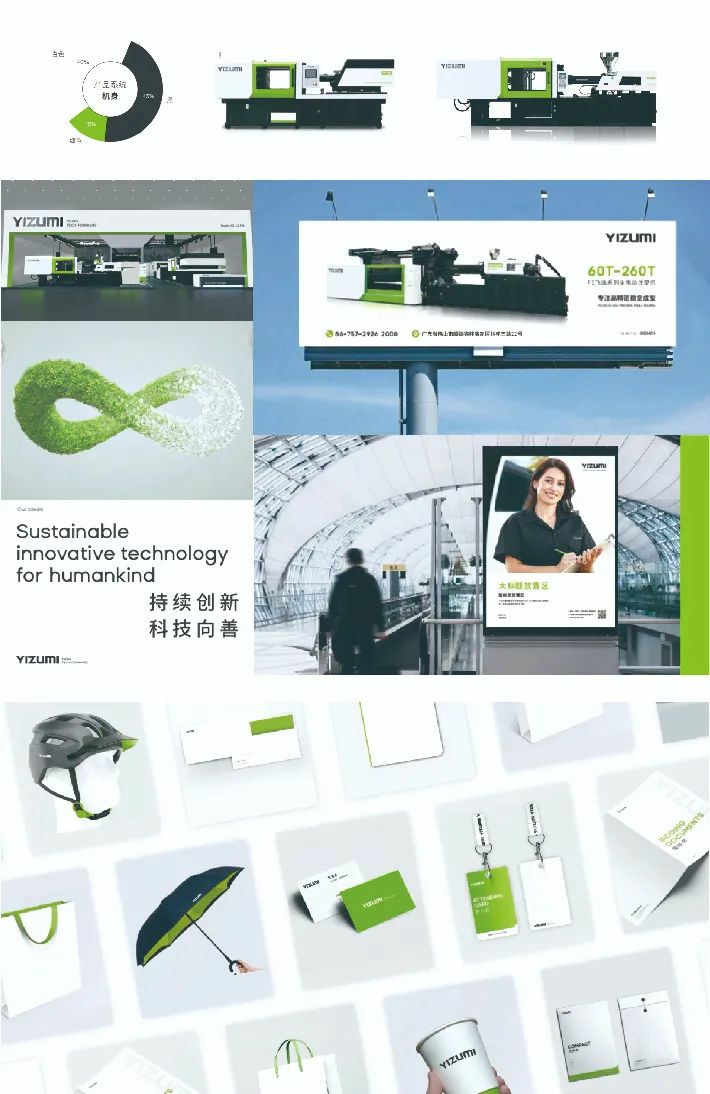 升级logo后,从原本绿色为基调、黑色为辅,变成现在深灰色要素的设计,在传承YIZUMI品质精神的同时更是被赋予了全新的内涵。带有科技感、国际化和高端化的深邃灰,象征着YIZUMI用全球创新开启智慧未来,致力于为全球客户带去更好更专业的服务;“扶正”了的logo字体,也是更加符合国际化的调性,传递YIZUMI近年来布局全球的战略,彰显YIZUMI逐梦世界级成型装备企业的初心。