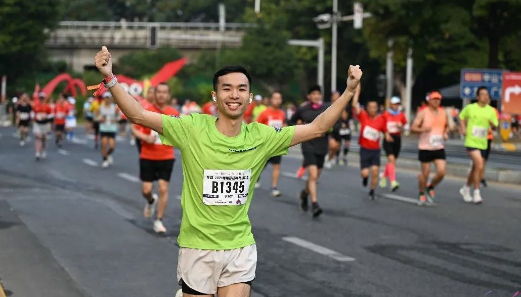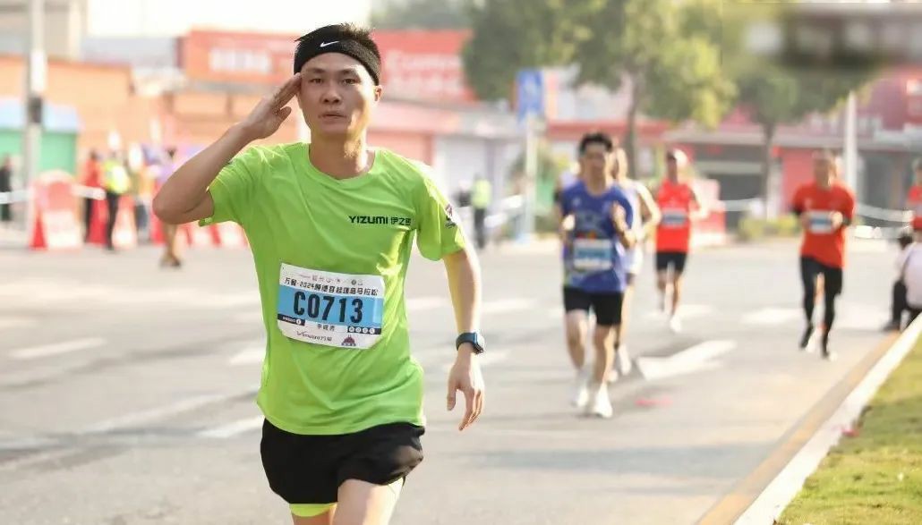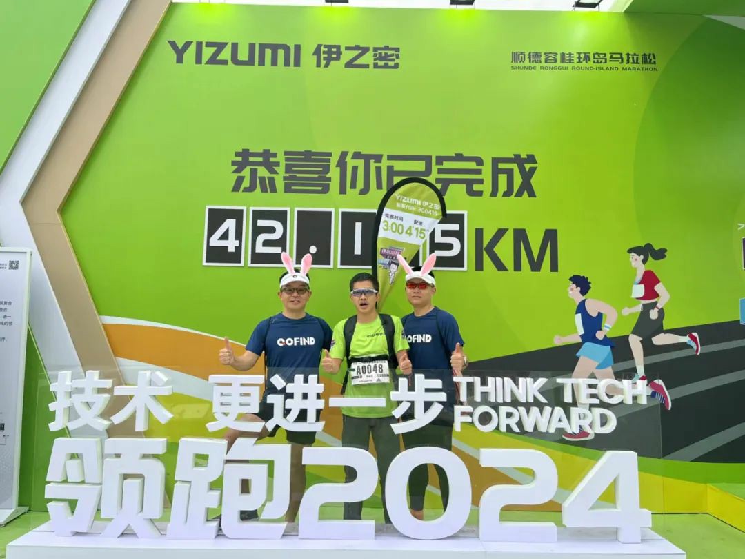 比赛过程中,伊哥们把握跑步节奏、调整呼吸,用脚步和汗水丈量距离,朝着终点奔跑。其中,伊之密财务总监杨远贵作为全马300兔子身背刀旗,旗帜上印着的伊之密股票代码300415(300代表完赛时间,415代表配速)随风飘扬,并在1小时29分14秒完成前半程。但后半程因天气太热未能按照原定配速完成比赛,最终取得3小时12分42秒的成绩。