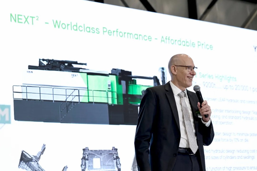 随后,北美压铸协会(NADCA)主席 Mike Meyer先生受邀出席了活动,并发表了热情洋溢的致辞。伊之密的众多高层管理人员、合作伙伴及客户齐聚一堂,共同见证了这一重要时刻。