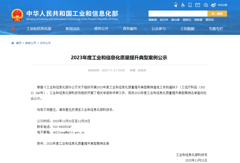 据介绍,为增强工业和信息化质量管理能力、推动质量技术创新应用、提升产品可靠性水平,及时发现、总结、推广一批示范性强的先进经验,今年9月工信部组织开展2023年度工业和信息化质量提升典型案例遴选工作,面向质量管理能力、质量技术创新应用、可靠性提升三大方向,挑选具有较强的代表性、创新性和可推广性,对相关行业、供应链质量或企业质量提升具有较强借鉴意义和推广价值的案例上榜。