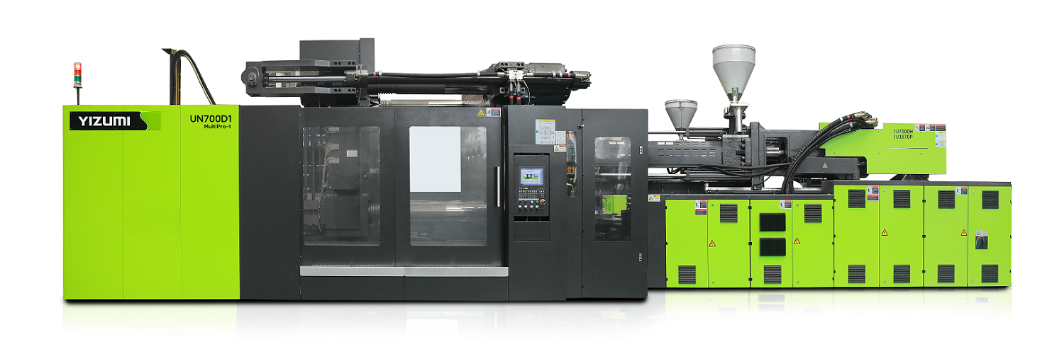 UN700D1M两板式双射注塑,生产6层厚壁透镜技术,实现分层注塑,缩短成型周期,机械手取件后激光切割水口,视觉识别产品缺陷,最后机器人装箱。