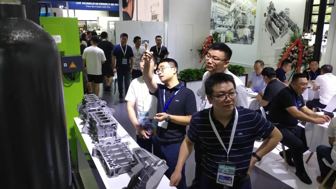 展会上,伊之密携超大型智能压铸整体解决方案、LEAP系列压铸机、HII系列冷室压铸机、半固态镁合金注射成型机、Yi+Platform智造平台亮相上海压铸展,一经亮相就受到广泛关注。