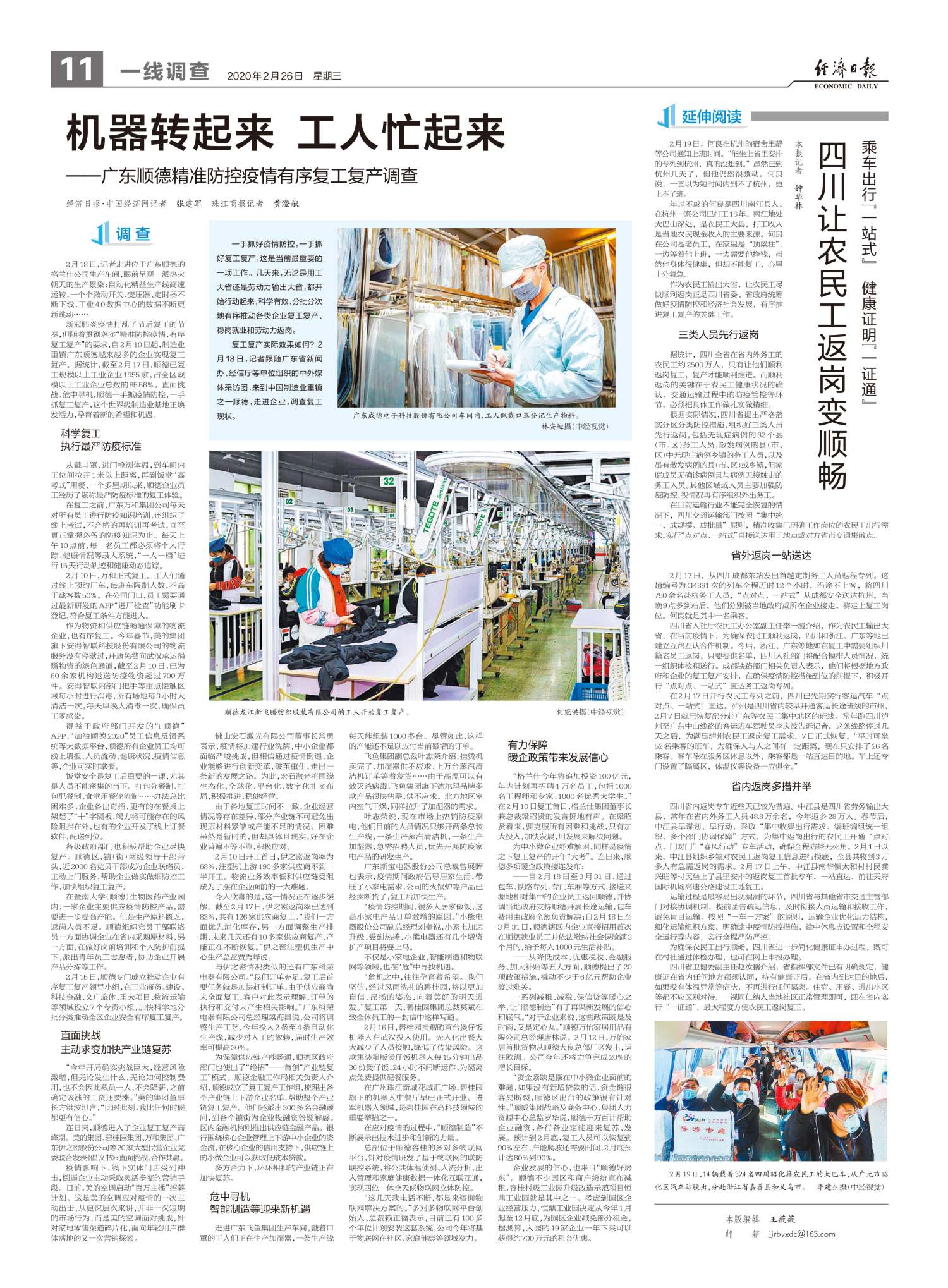 注塑机生产中心生产总监贾秀峰打开手机,全中心428名技术人员到岗情况一目了然。生产中心技术人员主要来自广东,2月10日,返岗率达68%。除9名回家过年的湖北籍员工暂留家乡外,一些外省员工或坐飞机,或自驾车绕开湖北先后赶回顺德。至17日,356名技术人员进厂复工,返岗率升到83%。目前未能到岗的,主要因当地封村、封路所致。贾秀峰认为,员工成长为装备技术人才很不容易,至少需培养两年,只要疫情好转,他们很快就会回来。