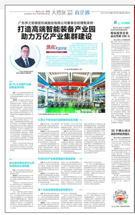 转载9月20日《佛山日报》“大湾区经济观察”伊之密董事总经理甄荣辉专访: