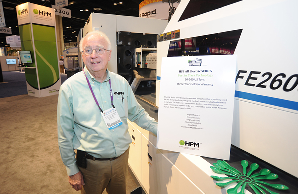 "HPM以前就是以大吨位二板式塑机闻名,所以我们没有在北美销售伊之密生产的大吨位肘杆式塑机,因为我们认为大部分HPM客户更喜欢二板塑机。现在新的HSII系列让我们有机会销售给多年前购买HPM二板塑机的忠实客户们。"
