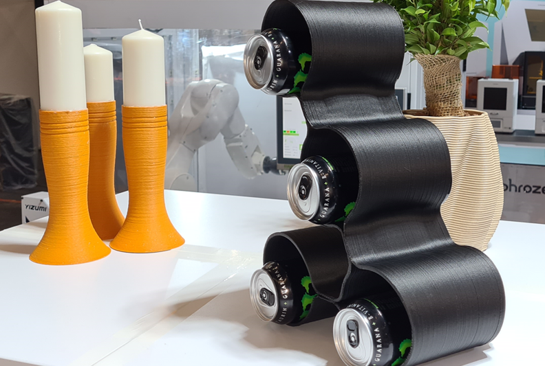本次展出的SpaceA-S-900E为小型标准机,臂展可达900mm,载重10kg,适用于中小尺寸产品打印,常用于原型制造、文创产品、广告灯牌、非标夹具、科研活动等领域,也可以搭载传送带等选配项目实现小批量自动化生产。