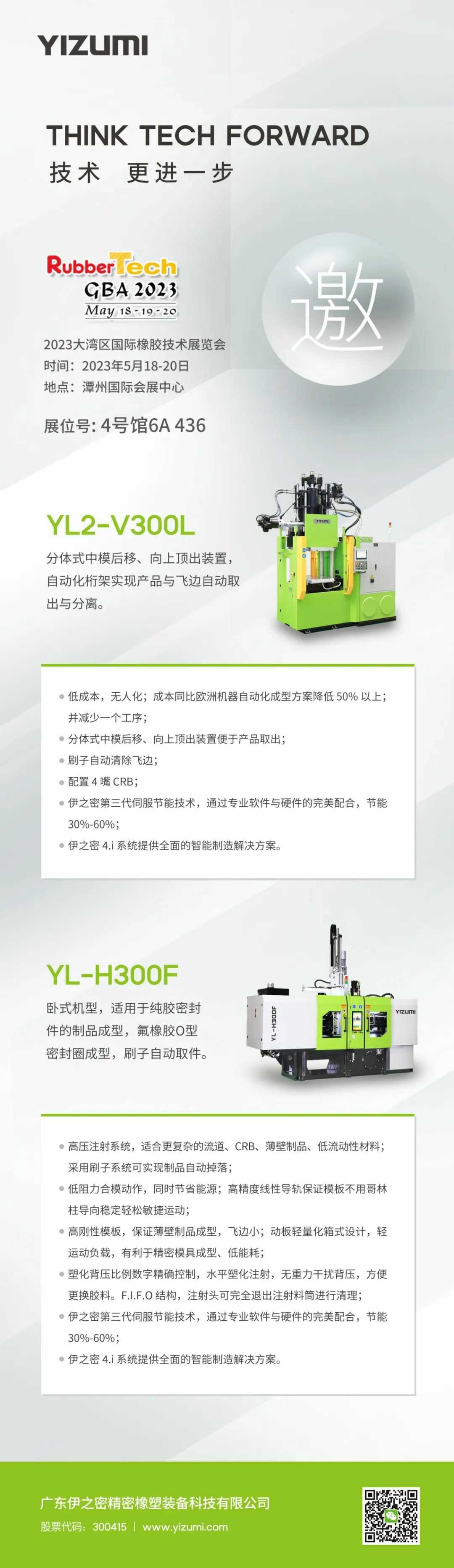 自大湾区展会办展以来,伊之密橡胶机从未缺席,一直在不断地借助此平台向世界展示伊之密取得的最新成果。届时,伊之密将以“智造 至简”为主题参展(展位号:4号馆6A 436),现场展示多套先进的橡胶注射成型方案及智能制造方案。