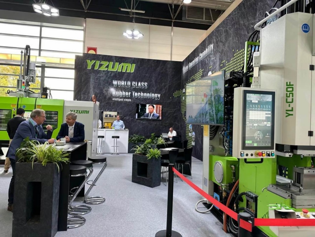 21日,德国杜塞尔多夫国际塑料及橡胶博览会(以下简称:K展)在杜塞尔多夫展览中心持续举行。在伊之密橡胶机展位,现场以“智造 至简”为主题,演绎智能化、简单化的前沿产品技术。YL-C50F、YL-H200F、YL3-V440L一经亮相就引来商客驻足围观。