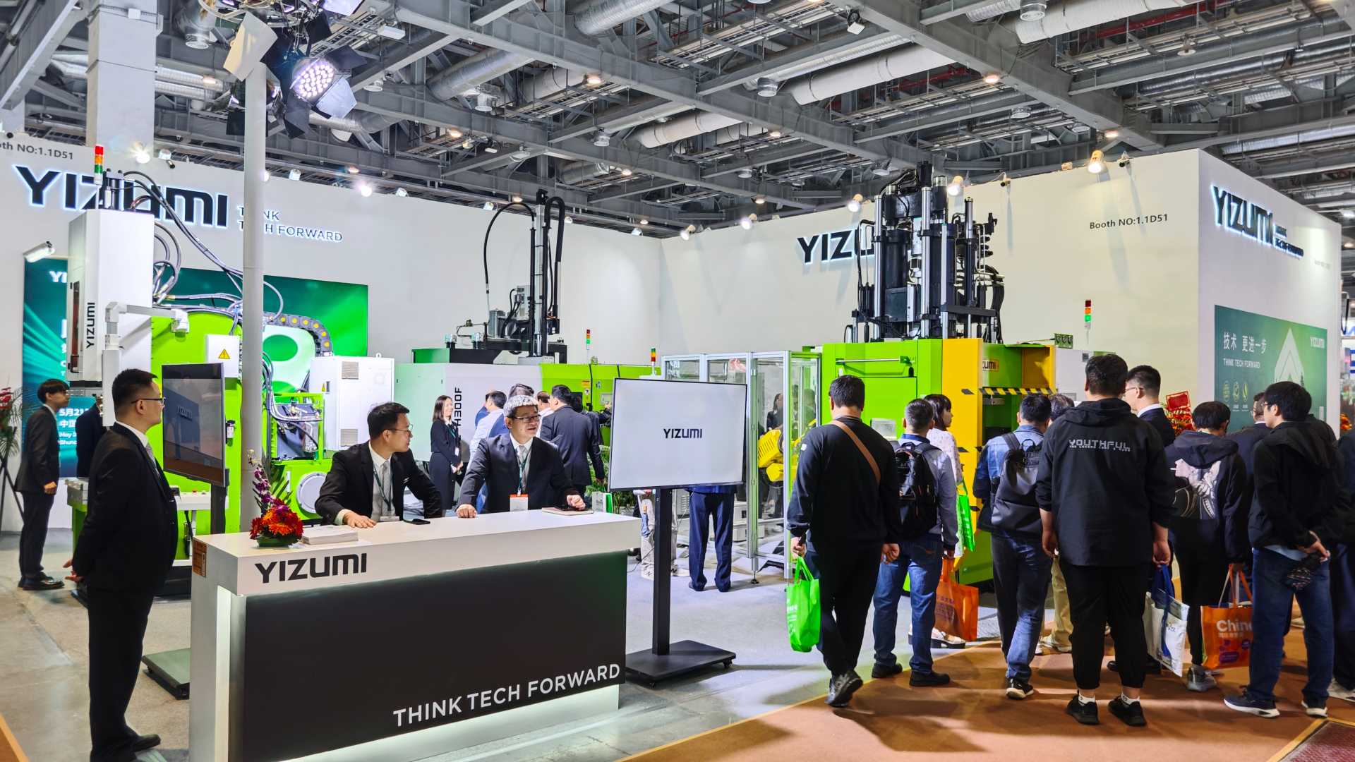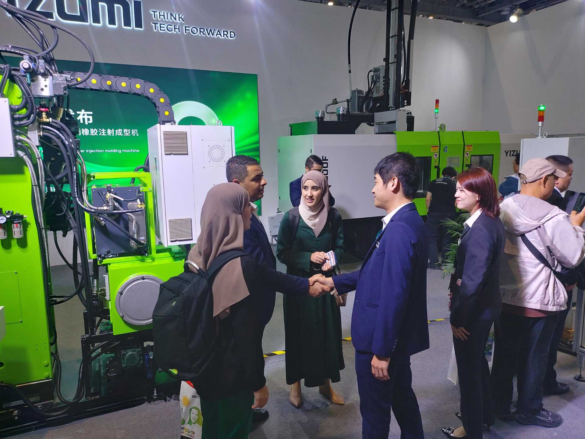 展会上,伊之密橡胶机的展位前人潮涌动,吸引了众多国内外观众的驻足参观。公司的技术人员热情地向观众们介绍着产品的性能特点、应用领域以及技术优势,并与他们深入交流,共同探讨橡胶注射成型行业的发展趋势和未来前景。