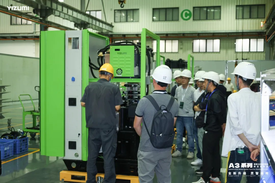 在伊之密测试与应用中心,嘉宾们见证了全新A3系列橡胶注射成型机的精彩亮相。这一机型的推出无疑将推动橡胶制品行业的发展,同时也彰显了伊之密橡胶机在高分子材料成型装备制造领域的卓越实力。