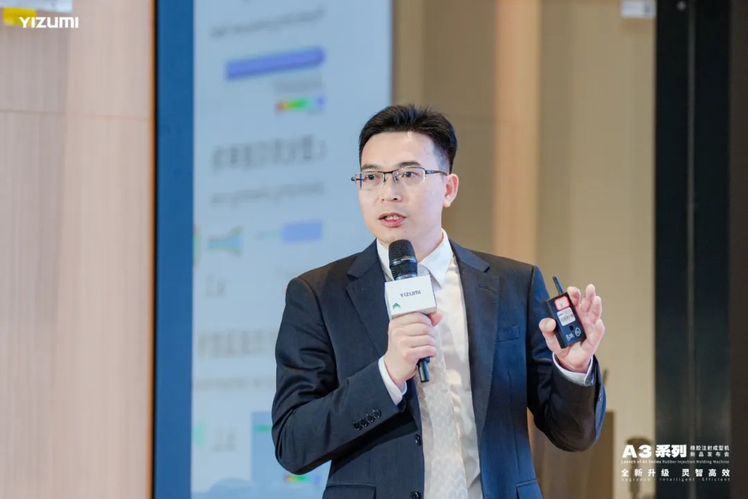 在发布会上,伊之密橡胶机产品部经理陈英先生指出,新推出的A3系列橡胶注射成型机融合了橡胶制品注射成型最新的专业技术和伊之密集团共性技术货架的先进技术,在成型性能、可靠性、易用性、可维护性及生命周期成本等方面进行了全方位的升级和改进,搭载多项拥有自主知识产权的领先注射塑化技术、温油温度控制技术、伊之密第四代伺服节能技术、高度的模块化设计技术等,更灵智、更简单、更节能、更安全,为橡胶机械行业的发展注入新的动力。
