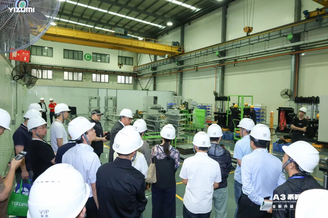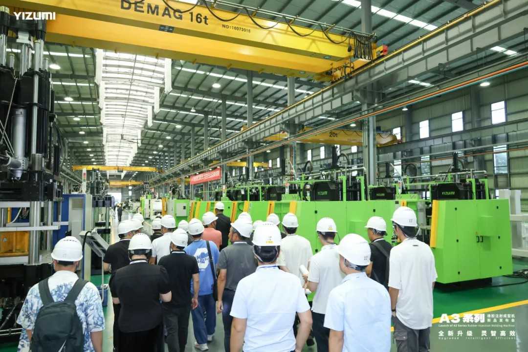 在伊之密橡胶机领导及工作人员的指引下,嘉宾们先后参观了伊之密橡胶机流水线车间、全球创新中心多媒体展厅,详细了解公司的发展历程、研发实力和未来发展方向。