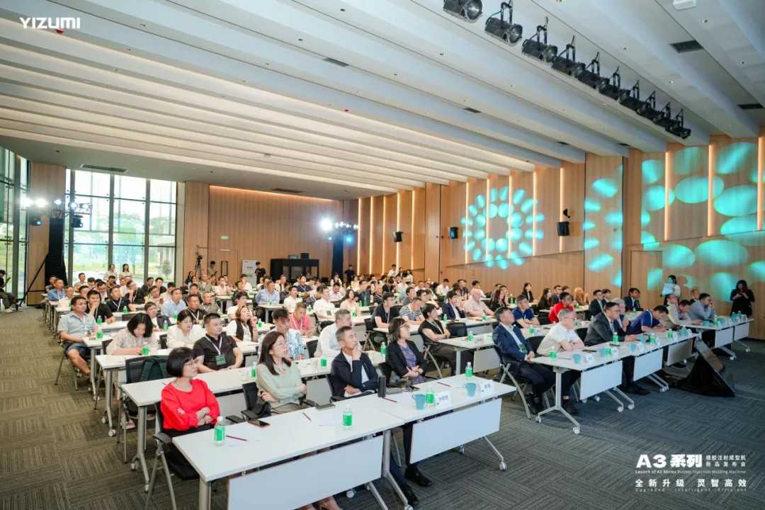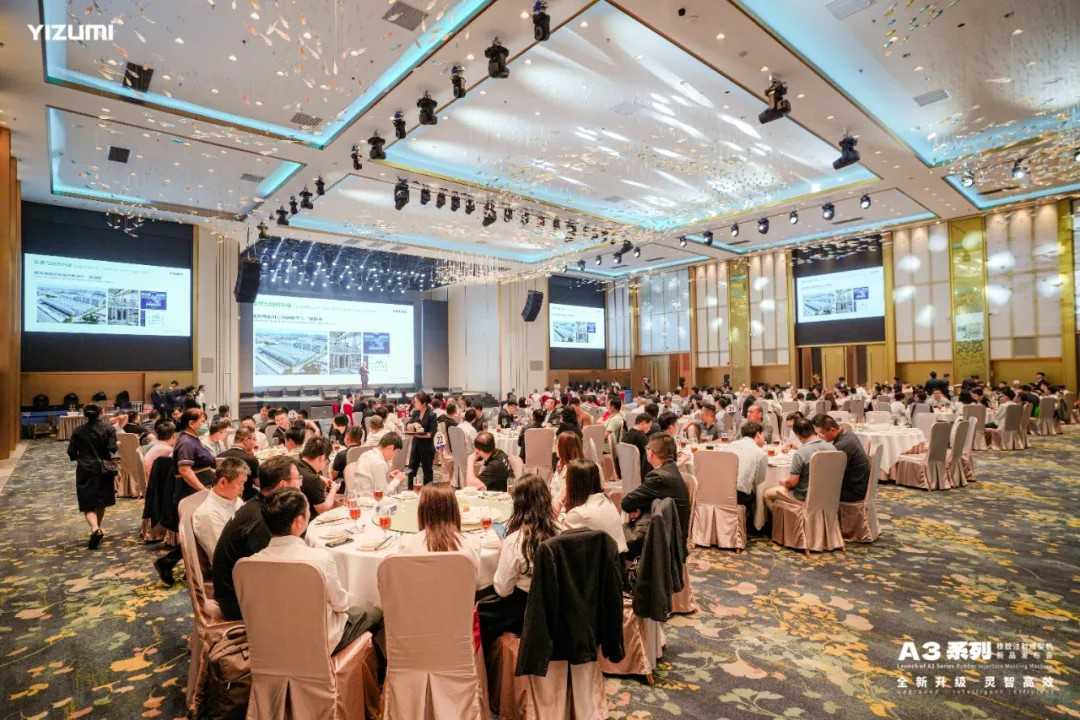 当天晚上,伊之密橡胶机举行A3系列新品发布会暨15周年客户答谢晚宴。晚宴现场,华灯璀璨,宾朋满座。