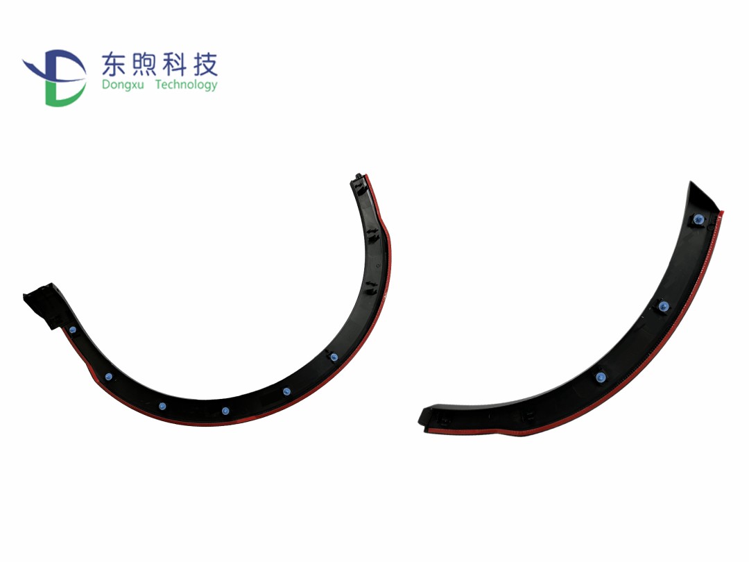 轮眉类产品为不规则曲面产品,且贴胶轨迹为弧形,在以往贴胶过程中对贴胶以及精度有着很大的挑战。