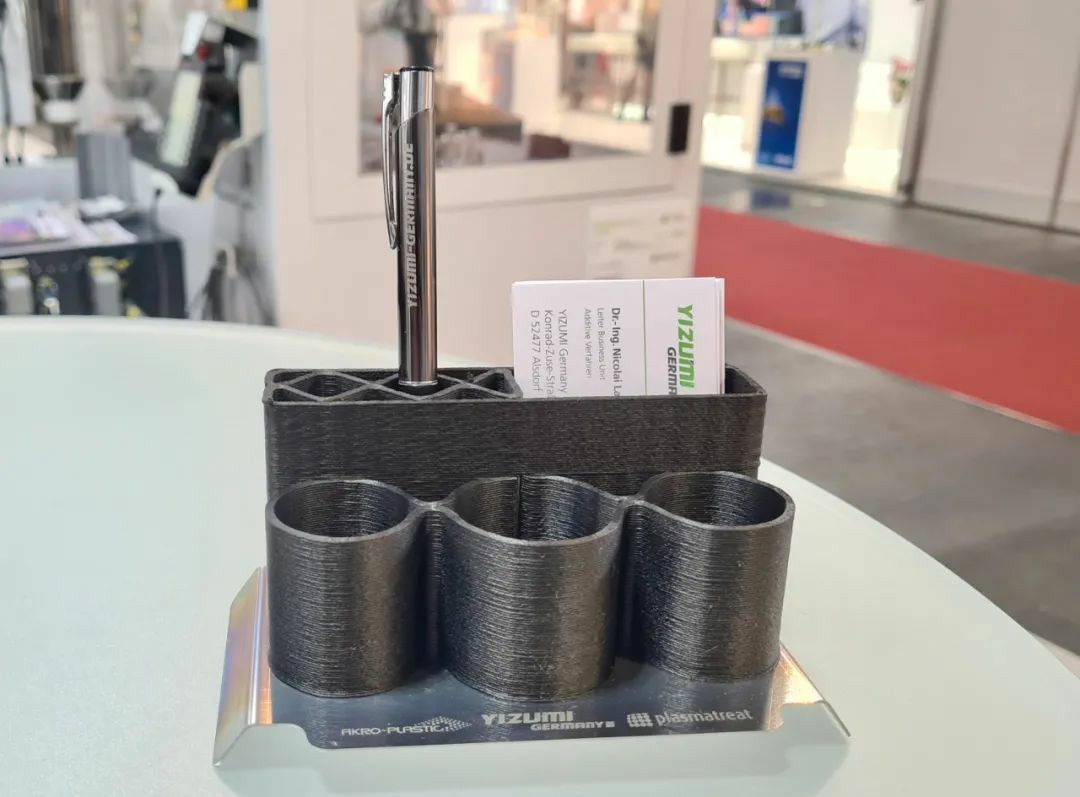 伊之密SpaceA工业3D 打印机 SpaceA-900E-500-S也亮相展会,并在现场打印笔架制品,引来各方关注。