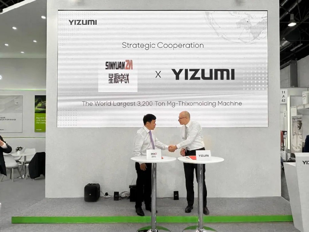 在德国杜塞尔多夫国际展览中心伊之密(展位号:11A42)活动区,宁波星源卓镁技术股份有限公司(以下简称:星源卓镁)与伊之密签署战略合作协议,订购一台3200吨半固态镁合金注射成型机,这是目前全球最大的半固态镁合金注射成型机。