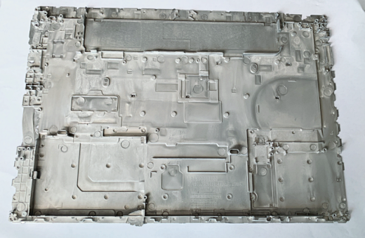 在保持配置不变的前提下,镁合金的出现,让笔记本的轻薄化、质感化程度更进一步。苏州镁瑞电子科技有限公司总经理汪阳说:生产这种铝镁合金笔记本电脑配件,追求的是薄和成型效率,以13寸笔记本电脑C件为例,其最薄只有0.6mm,厚薄正负公差不能超过0.05mm。因此伊之密冷室压铸机实压射速度达到5m/s,加上出色的锁模系统技术和机器的稳定性,正好能符合镁瑞对高质量压铸件的需求。“另外,我们购买伊之密H系列压铸机,还看中了它生产效率能够提升15%-20%,成型周期快。”目前这款笔记本电脑C板成型周期可以达到30秒/件,每天能生产2000件以上,一年一台压铸机产量能达到75万件左右,合格率保持在95%,由于其产品质量的稳定性、生产效率的不断提升,镁瑞已经成为多家笔记本电脑主机厂的指定供应商,还长期为全球游戏笔记本电脑销量领先的微盟电脑生产零部件。