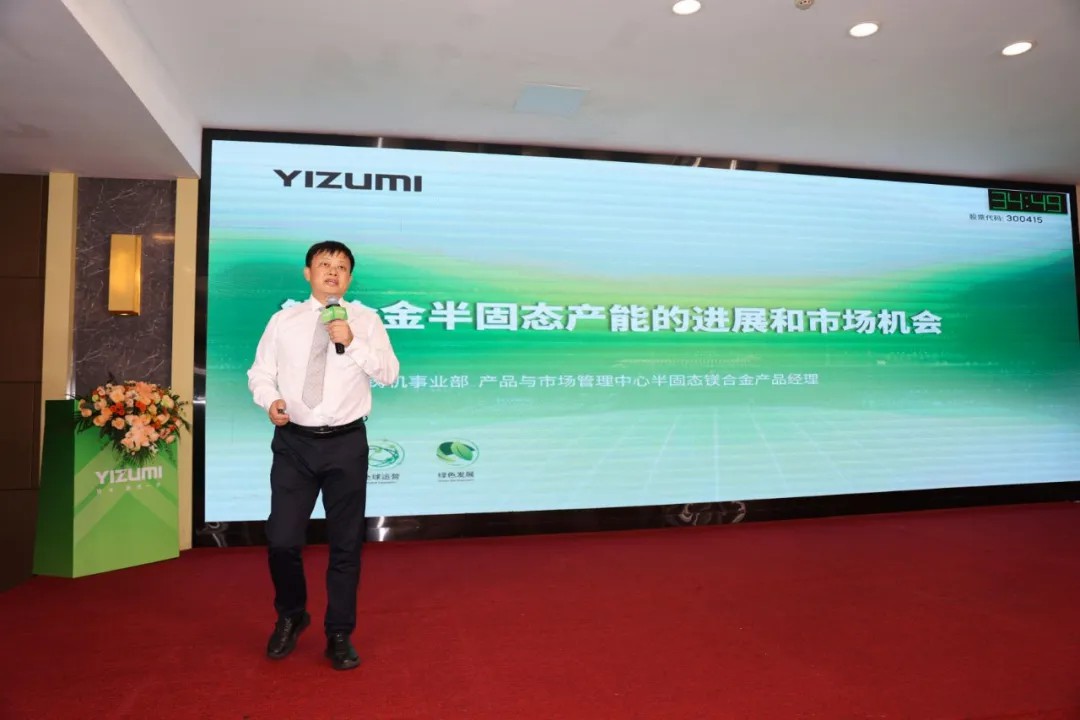 伊之密半固态镁合金市场部经理陈勇则围绕《镁合金半固态产能的进展和市场机会》展开分享。他详细阐述了半固态镁合金成型技术在新能源汽车、运动出行、3C产品、低空经济、人形机器人等多个领域的广泛应用,尤其在提升电动汽车续航方面潜力显著。陈勇先生表示:“伊之密已交付的UN6600MGII•Plus超大型镁合金注射成型机,其供料能力达36公斤,能更好地满足新能源汽车、机器人及低空飞行器等领域对大型一体化镁合金件的需求。公司还将根据市场需求动态优化镁合金设备产能,持续响应下游产业对轻量化方案的升级需求。”