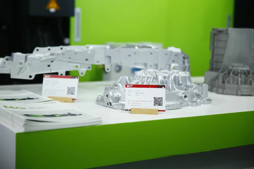 此次EUROGUSS,伊之密展出款式多样的金属制品,涵盖伊之密与国内整车制造企业共同完成的“超大型一体化压铸件”——前机舱和后地板。