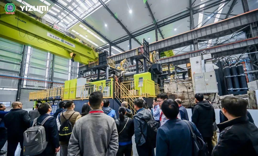 在伊之密超重型压铸机厂房,嘉宾们亲眼目睹了伊之密全新LEAP9000压铸岛、半固态镁合金注射成型机UN3200MGII的壮观景象;近距离领略了伊之密LEAP系列及HⅡ系列压铸机规模化生产线强大的生产制造能力。