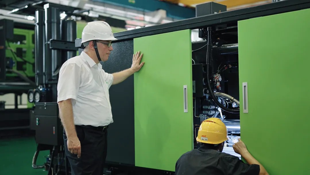 与此同时,环境可持续性发展已经成为制造行业不可忽视的关键议题。伊之密在环保装配方面的努力也显示了其对绿色制造的承诺。随着中国法律法规对废物收集和温室气体排放的日益严格,伊之密在环境管理方面不断进行创新和改进。他特别指出:“在光伏产业和智能技术的助力下,我们将大自然的馈赠转变为实实在在的效益。"通过这种方式,伊之密不仅在生产过程中减少了对环境的影响,还积极响应了全球环保的号召,为行业树立了一个良好的示范。