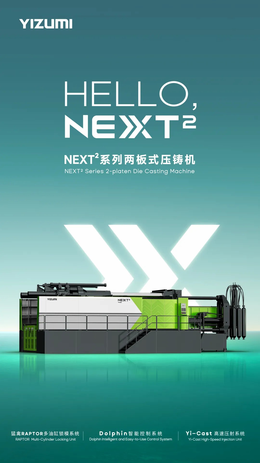 此次重磅发布的NEXT2系列两板式压铸机,是伊之密压铸团队继2021年推出LEAP系列产品后的又一惊世之作,它的诞生向外界展示了伊之密团队强大的创新研发实力和引领行业变革发展的雄心。