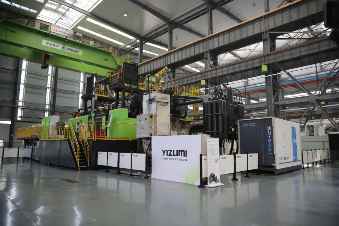 嘉宾们在超重型压铸机厂房,亲眼目睹了伊之密全新LEAP9000T压铸岛、7000T压铸岛的壮观景象;近距离领略了伊之密LEAP系列及HⅡ系列压铸机规模化生产线强大的生产制造能力。