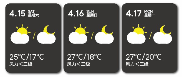 活动期间预计晴间多云,间中有雨,
