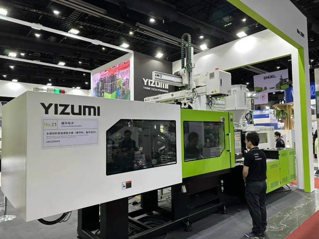展会上,伊之密运用UN320A5、 PAC200E两款注塑机,现场生产菜板、贴标小圆碗。其中,木塑材料菜板成型方案采用木塑专用塑化组件,生产菜板等日用品,节约塑料用量,实现废物再生利用,实现低碳绿色生产。伊之密高效而稳定的机器性能吸引大量专业顾客的关注与咨询。