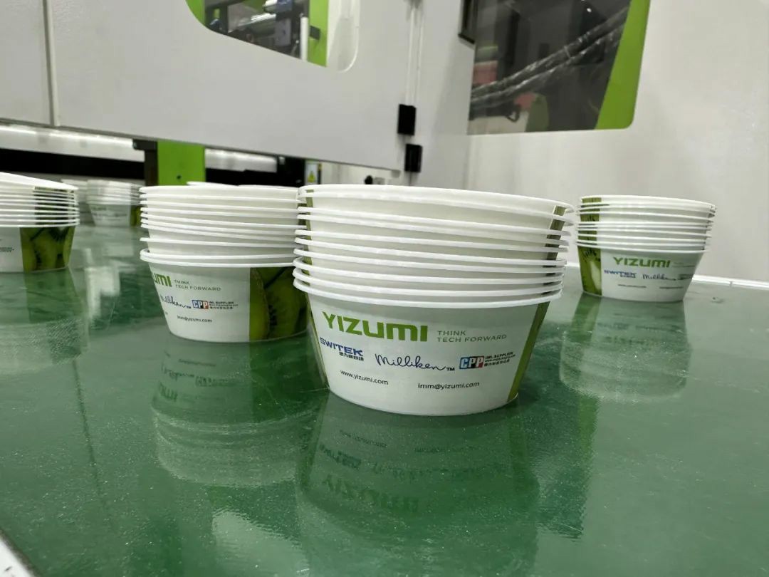 本届展会上,贴标小圆碗高速成型解决方案以PAC200E高速注塑机和一出四腔模具为基础,集成IML自动化贴标系统、周边辅助设备,实现了周期4±0.5s的贴标小圆碗自动化生产,满足客户高效生产、降低成本的需求。